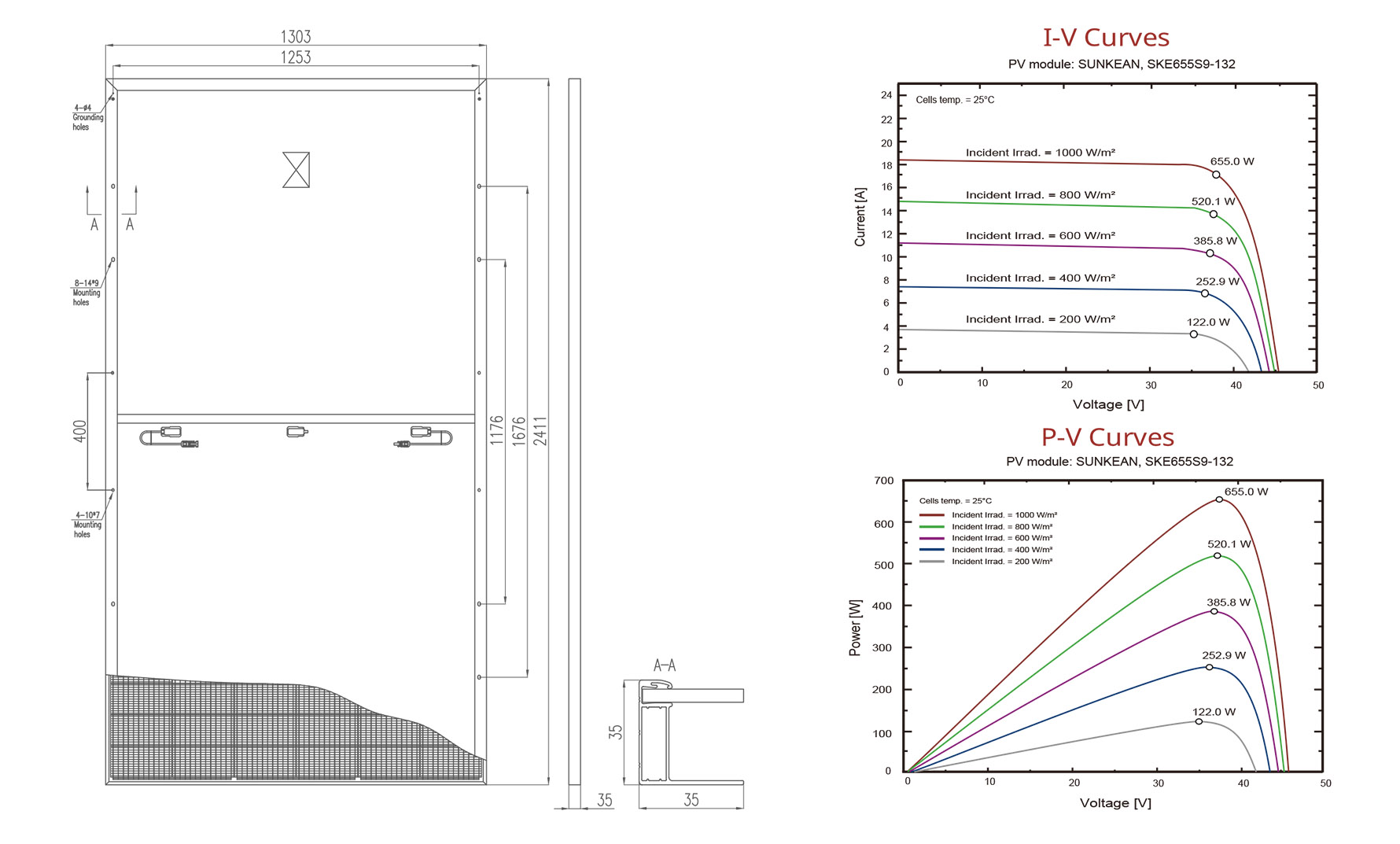 210mm 665W module conversion efficiency can reach 21.2%, higher output power, lower temperature coefficient, effectively reduce the system BOS cost and improve the project yield.