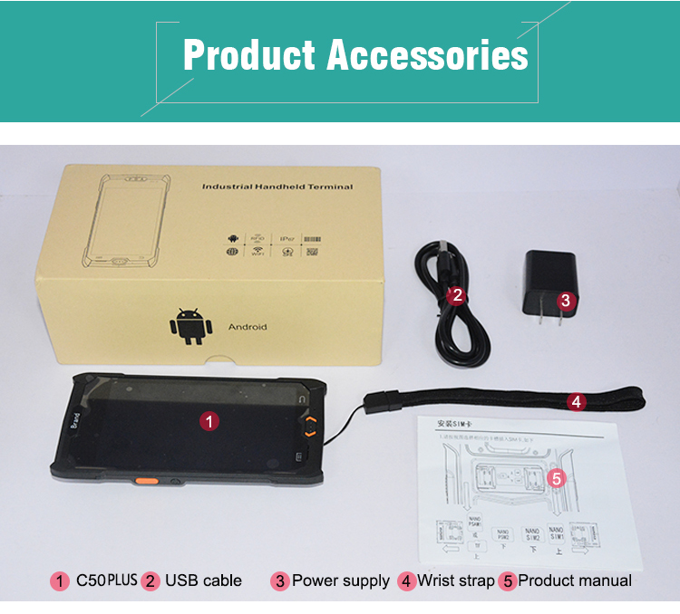 C50Plus Android Handheld Data Terminal Mobile Computer with 1D & 2D Barcode Scanner 3G 4G WiFi BT GPS, Ergonomic Pistol Grip for Warehouse Inventory. Beside, it also can upgrade from 2+16G to 4+64 G, with 4.35V 5000 mAh Lithium polymer battery.
