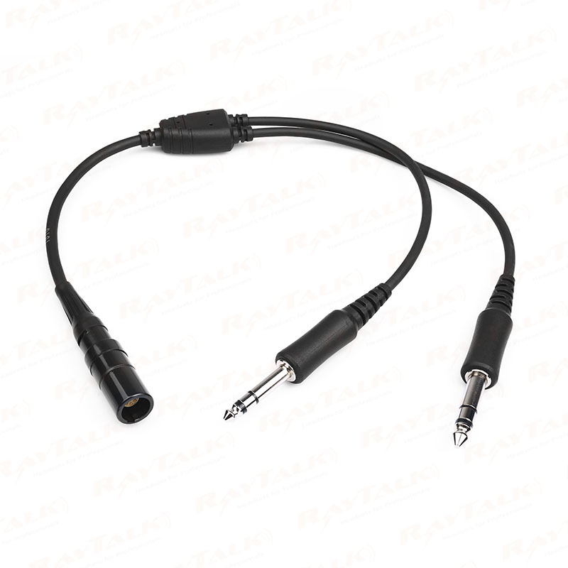 Simply plug your 6 pin LEOM connector from the Bo se A20 to this adapter and you'll have dual plugs that can be used in almost any fixed wing aircraft.