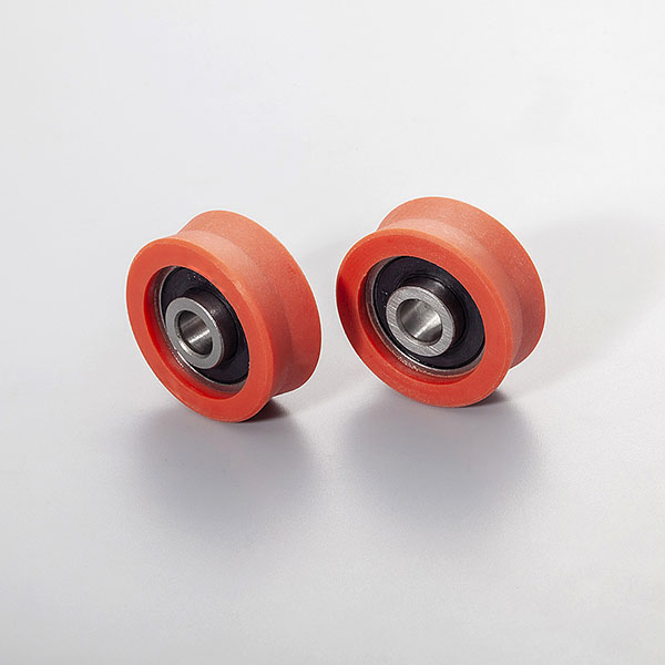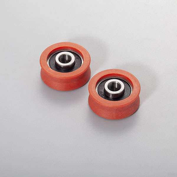 8*28*13mm 608 RS V Groove Orange Sliding Door Window Roller ,are produce Chrome steel Gcr15 ,outer coated with PA66+GF,we can provide free sample for you test .