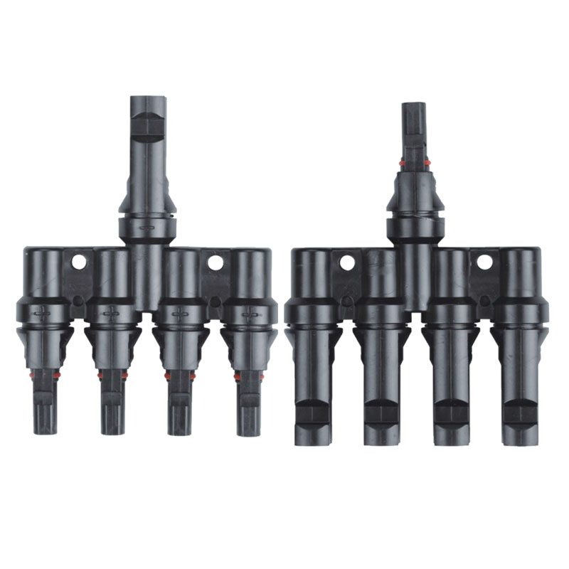 solar photovoltaic connector, T-type four-way splitter, 4 to 1, IP67 waterproof