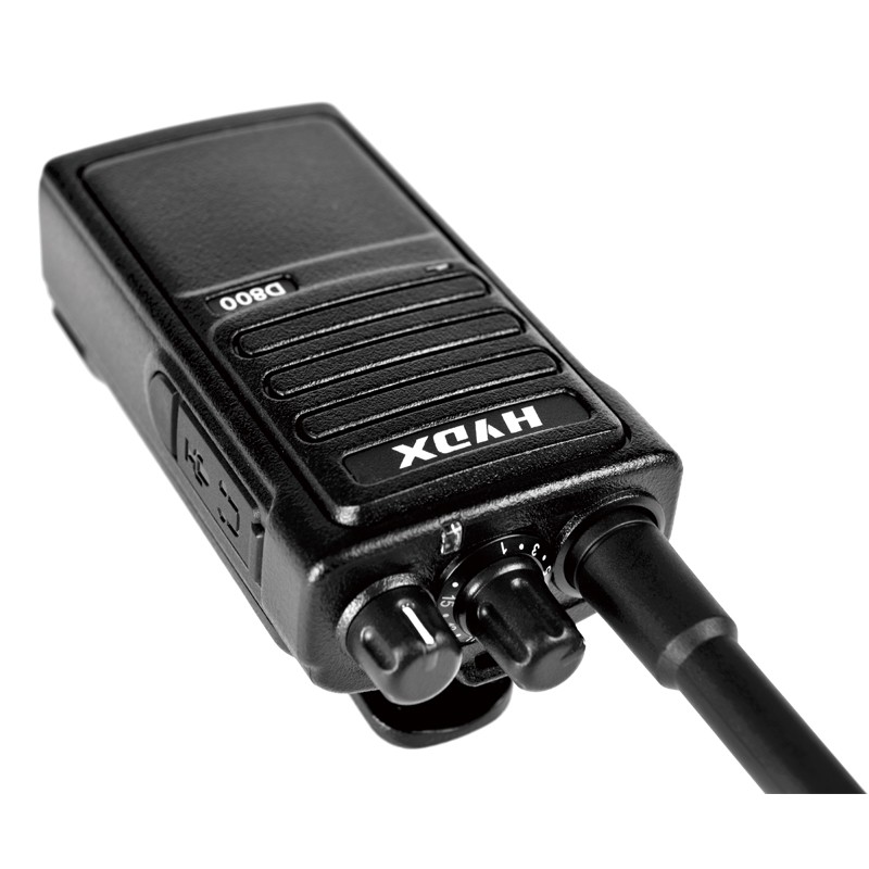·5W/1W Selectable.The HYDX D800 is a commercial handheld radio with a compact design, featuring high-low power selectable among 5W/1W and 1024 DMR contacts storage, allowing bulk import via software.