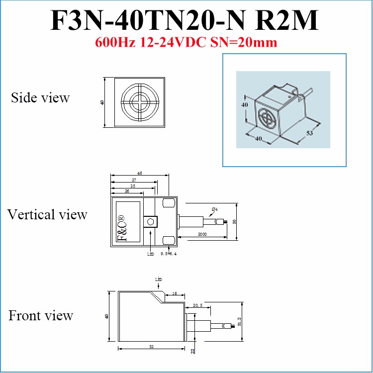 F3N-40TN/DN20-N /N2/P/P2 Square proximity sensor Front induction