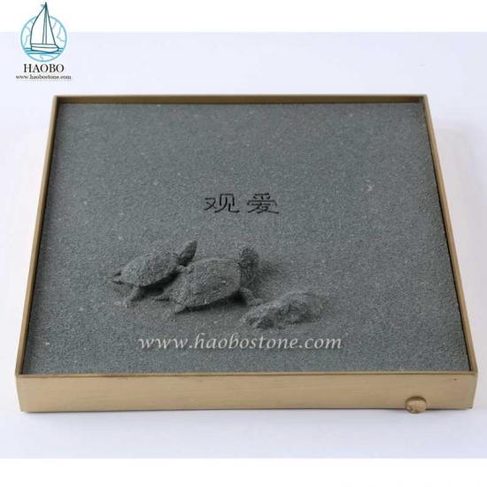 Gray Granite Original Design Turtle Carving Square Tea Tray