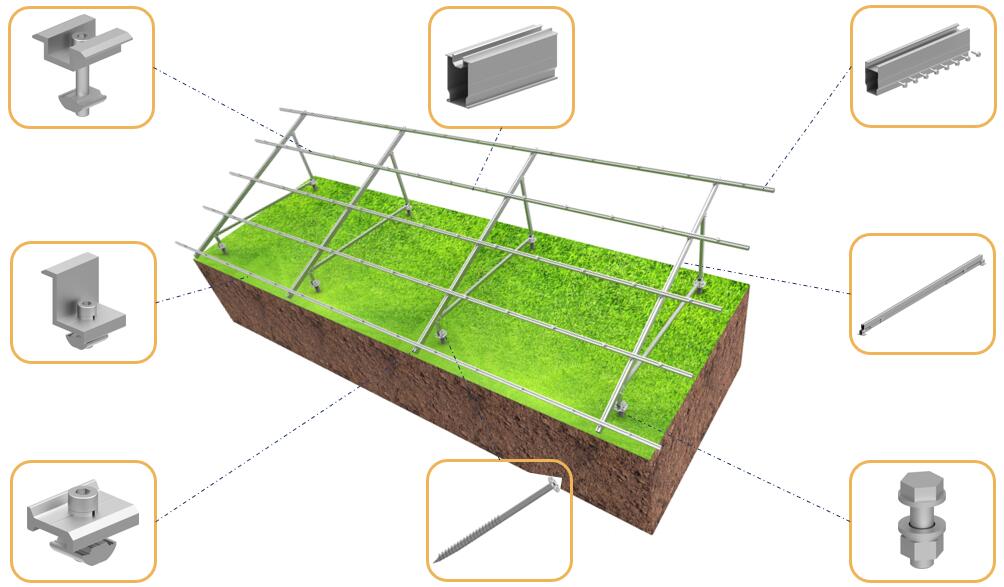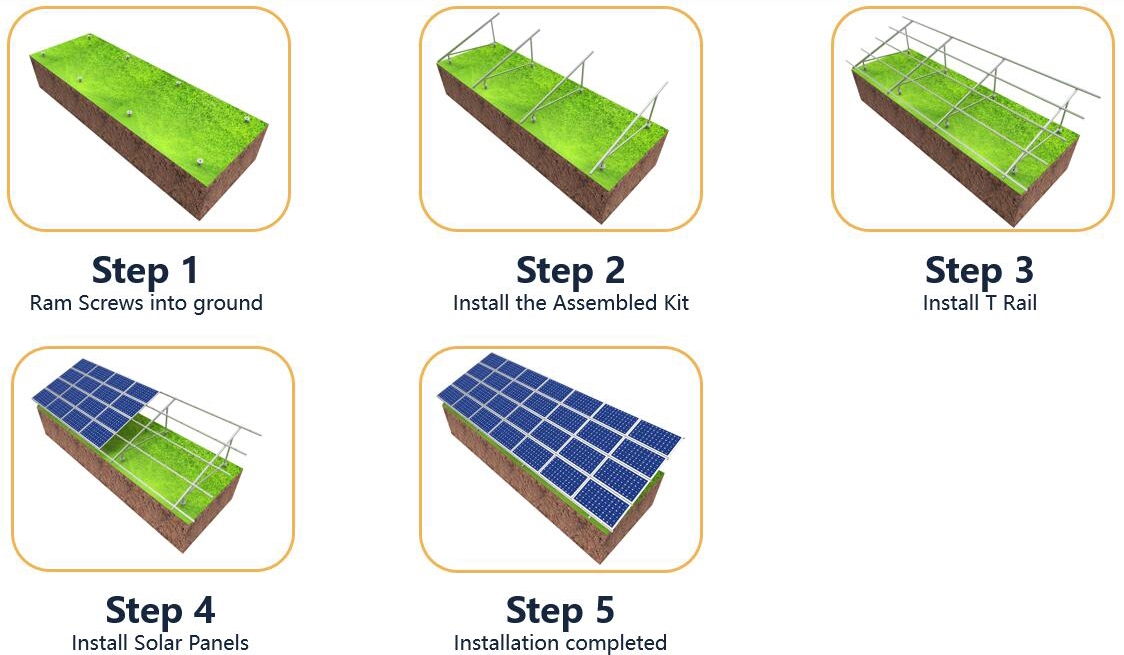 Ground Screw Mounting Structure can work with concrete base or ground screw depending on different soil condition.