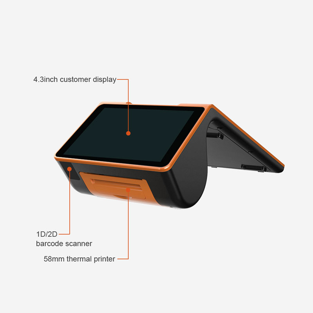 Dual 7 inches Capacitive Screens one for customers idea for hotels, supermarkets, business offices, electronic payment, logistics and Retailing places