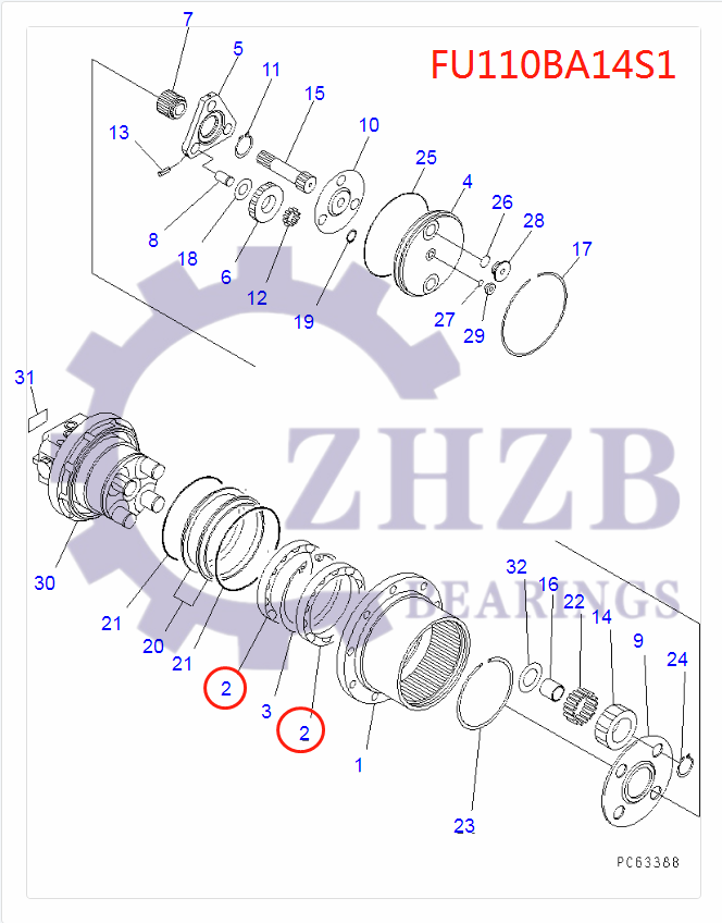 FU110BA14S1 bearings are used in the Excavator Final drive system of KOMATSU: