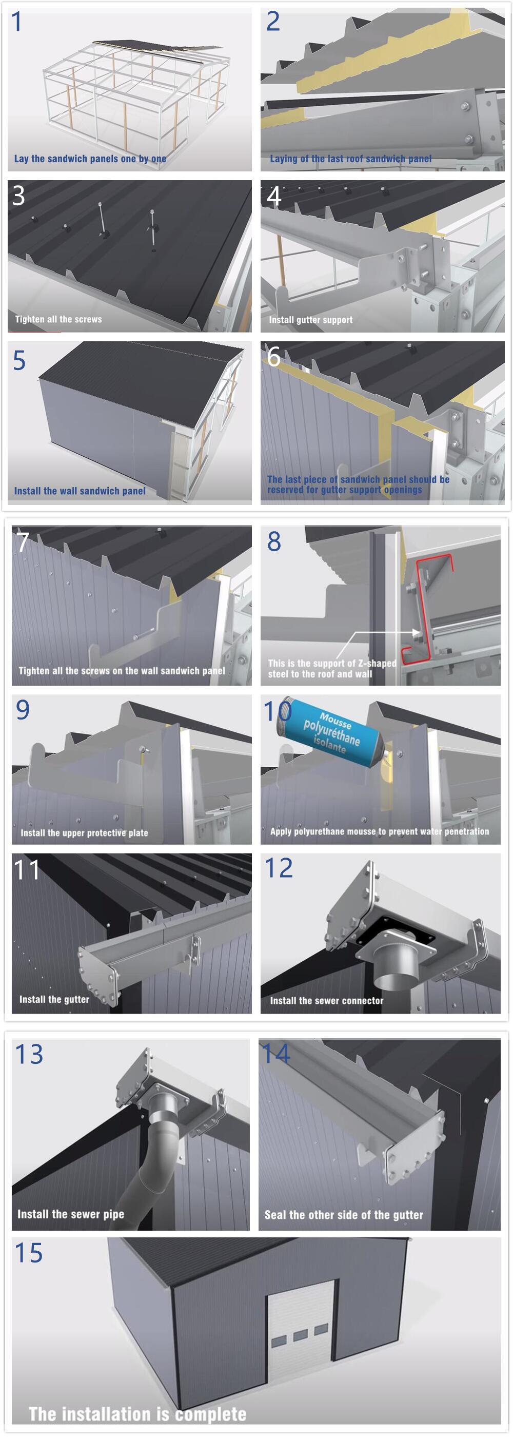 The installation of sandwich panels is relatively simple. Let's take a small house as an example to show you how to install sandwich panels.