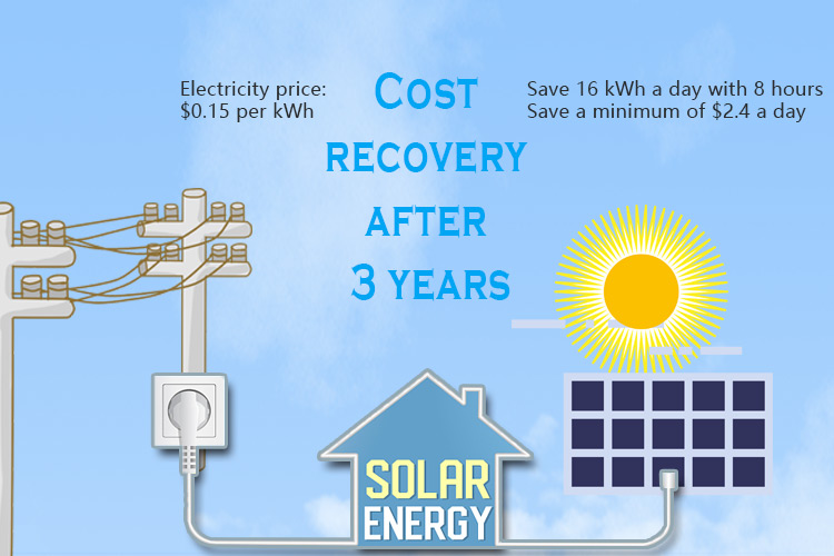 The system is composed of PV module, Solar Off grid inverter, MPPT charge controller and Battery pack. Solar Off grid inverter is core device of PV power sysem, it converts DC power produced by solar panels to AC power to provide electric energy for applications. MPPT charge controller charge the solar electricity into batteries. When solar energy is not enough for loads, or at night, the battery pack will be discharge to replenish energy for loads.