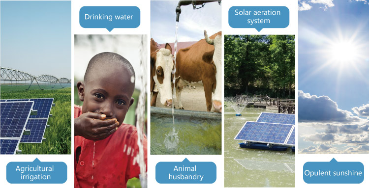 6. Meet the simultaneous input of the utility Grid/DG and solar, automatic switching, online energy complementary, solar priority, keep the pump rated work, and achieve 24H water supply.