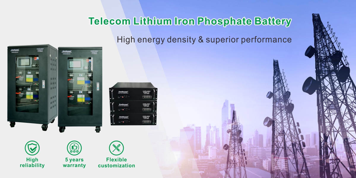 EverExceed LFP lithium battery telecom solution is mainly used for the backup purpose of telecommunication industry; its performance is in compliance with the requirements in the telecommunication standard, with the adoption of LiFePO4 battery structure packing by flexible plastic film or aluminum alloy rigid packaging, it can satisfy the higher and new requirements of the telecom sector for the communication backup batteries.